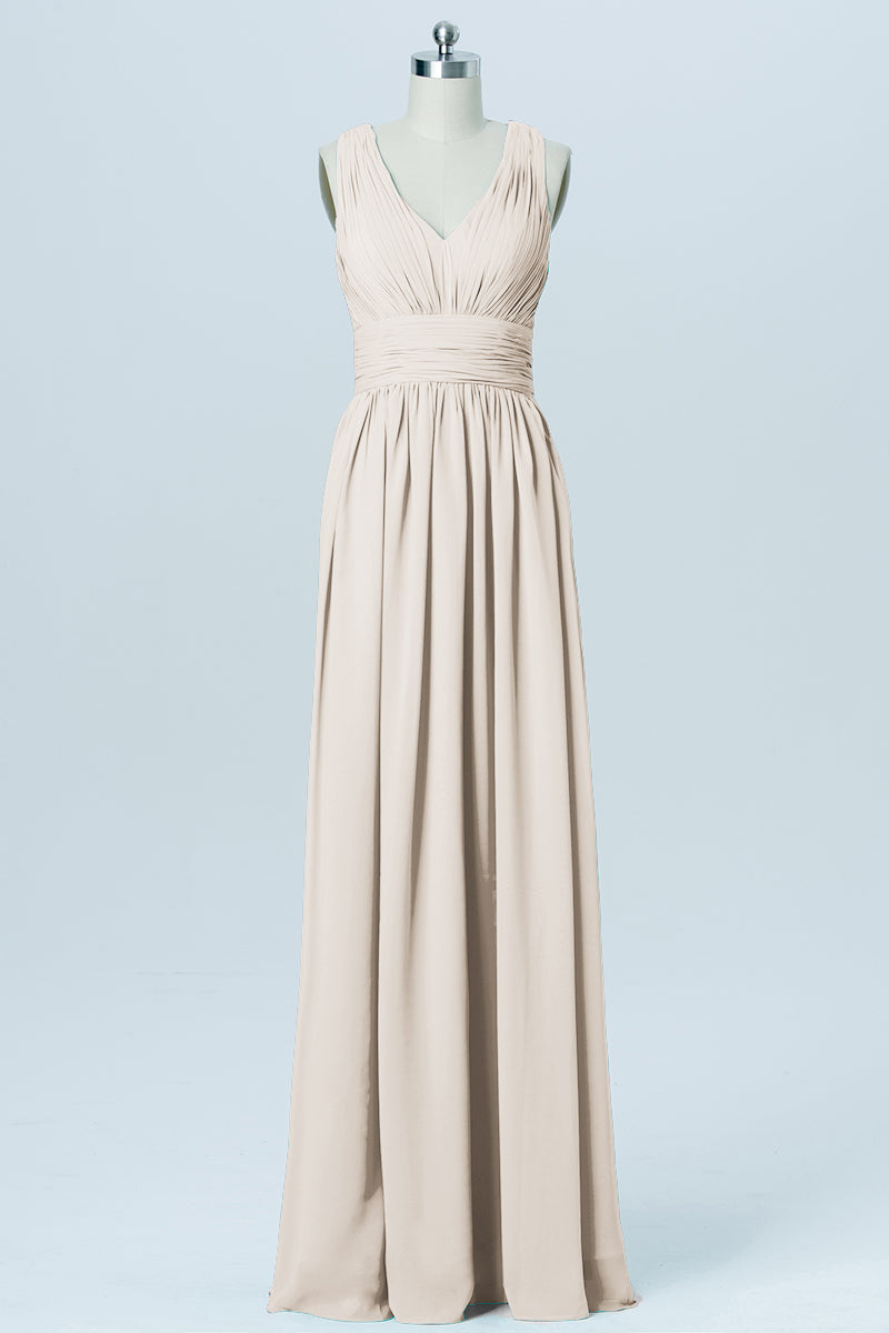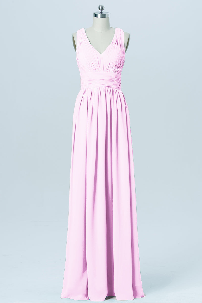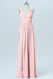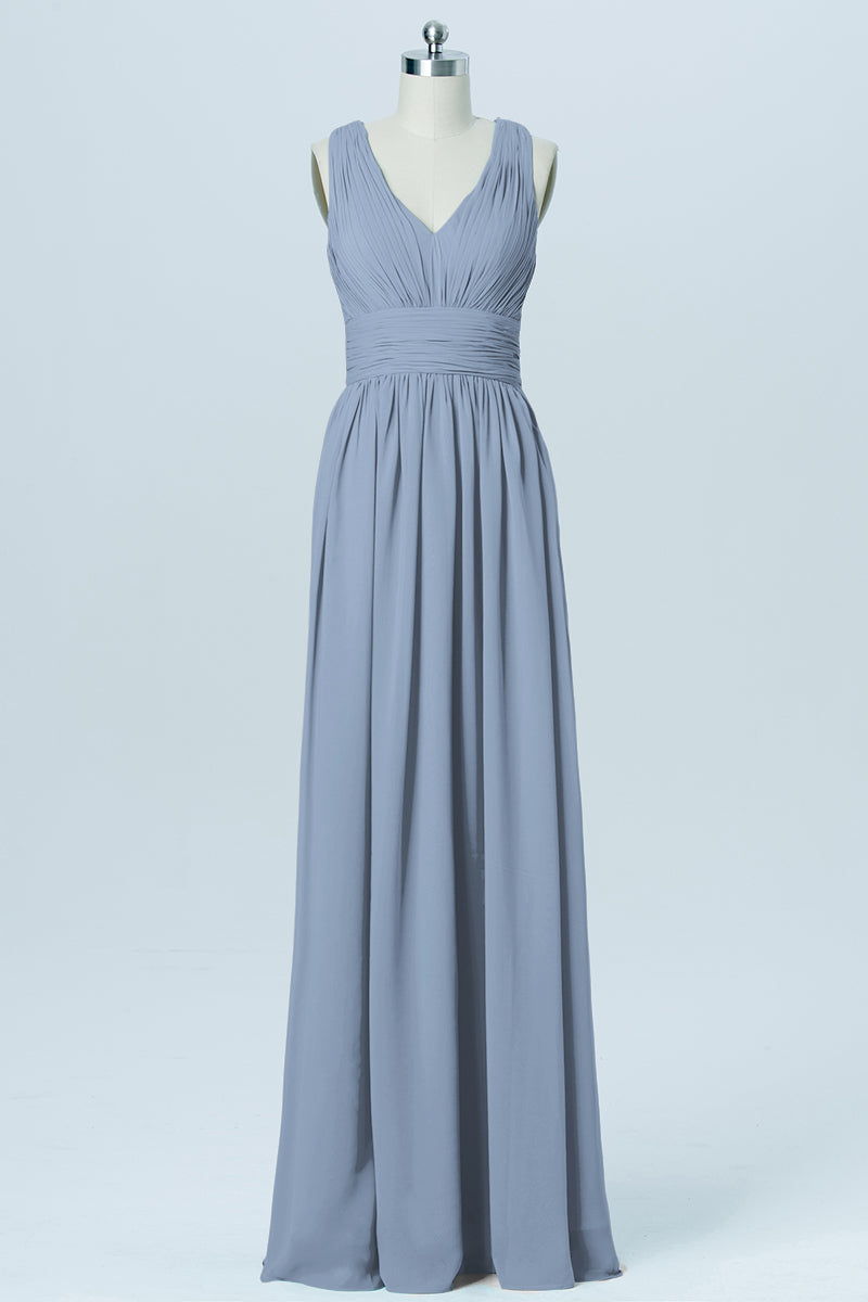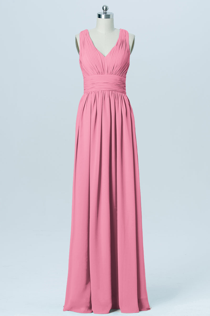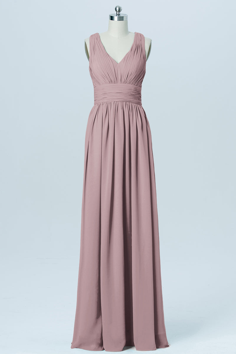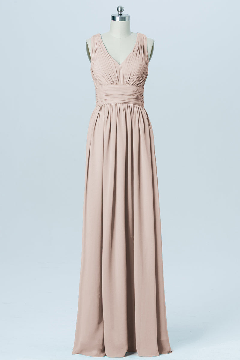 Chiffon Column V-Neck Sleeveless Bridesmaid Dress-B03022