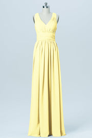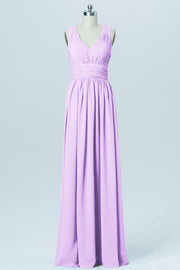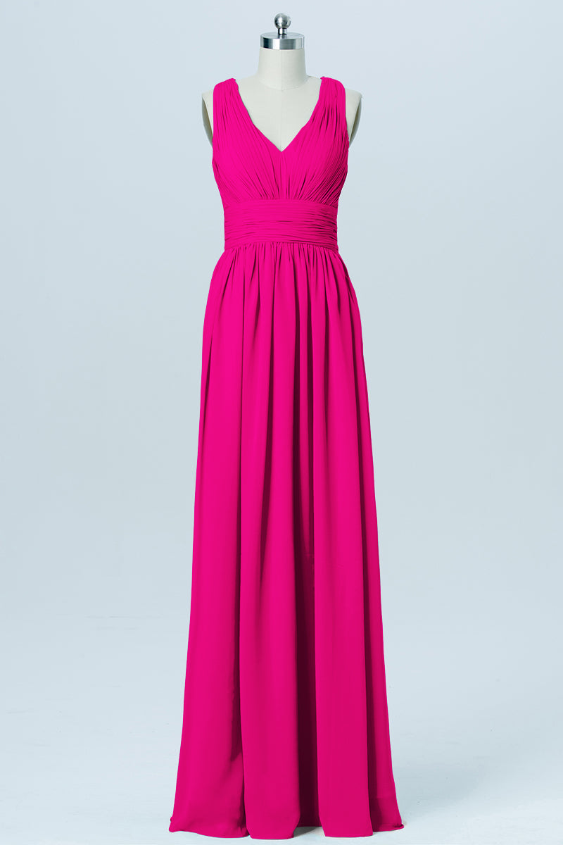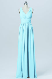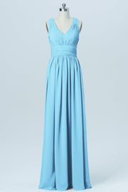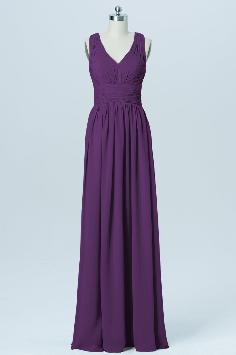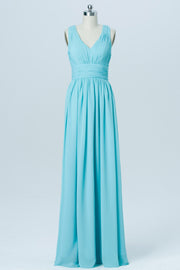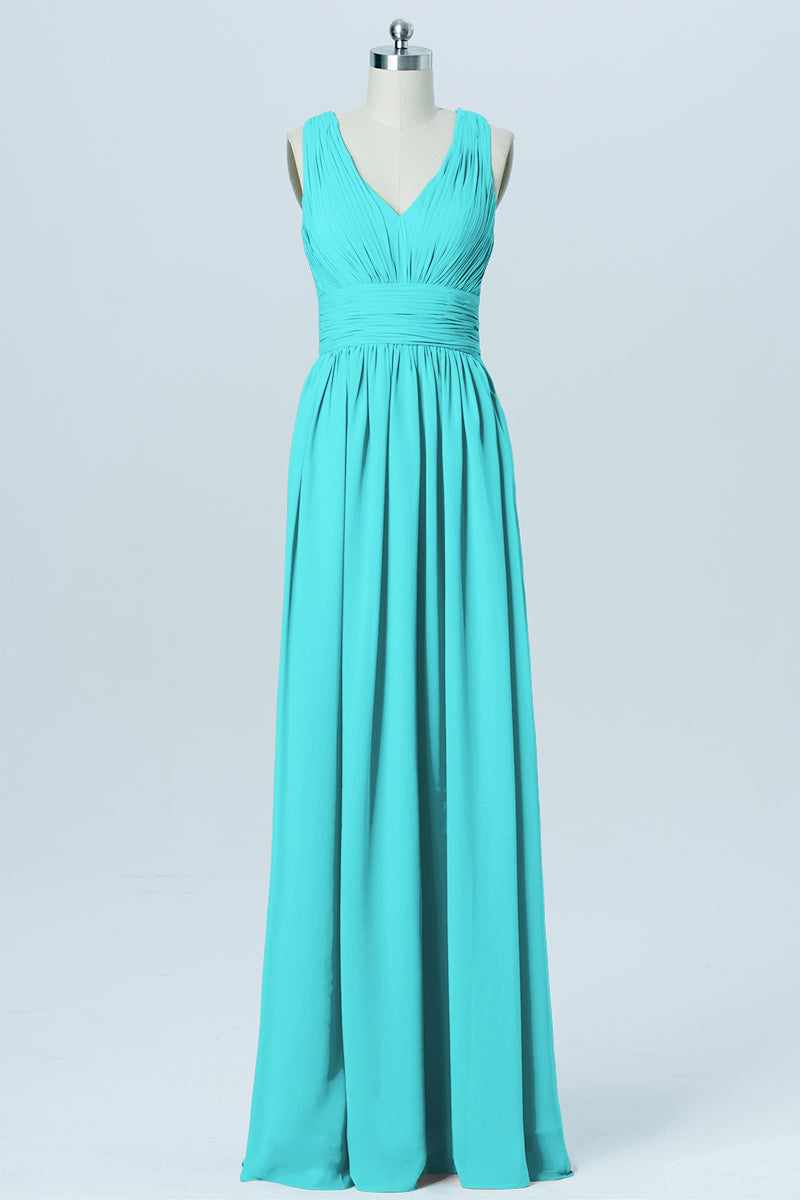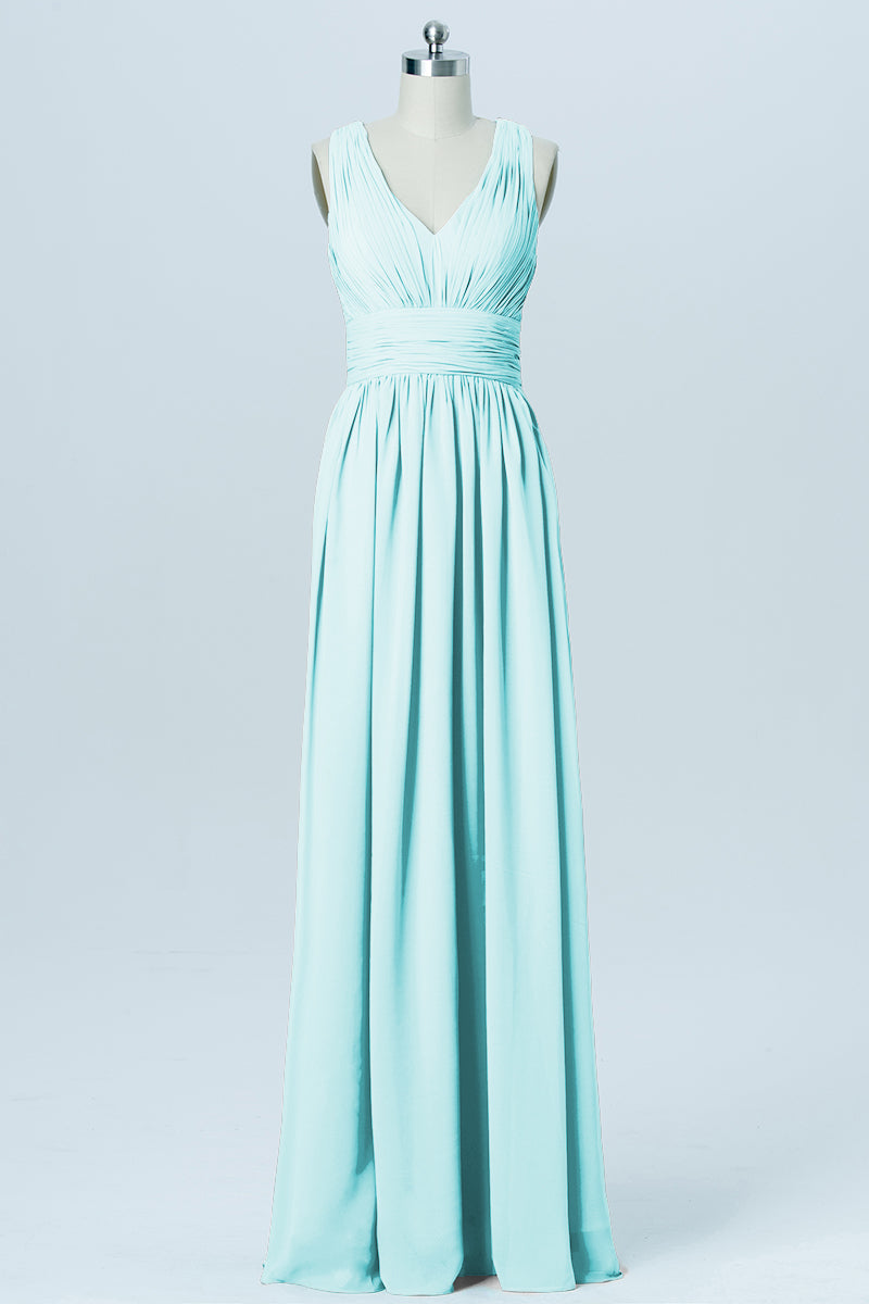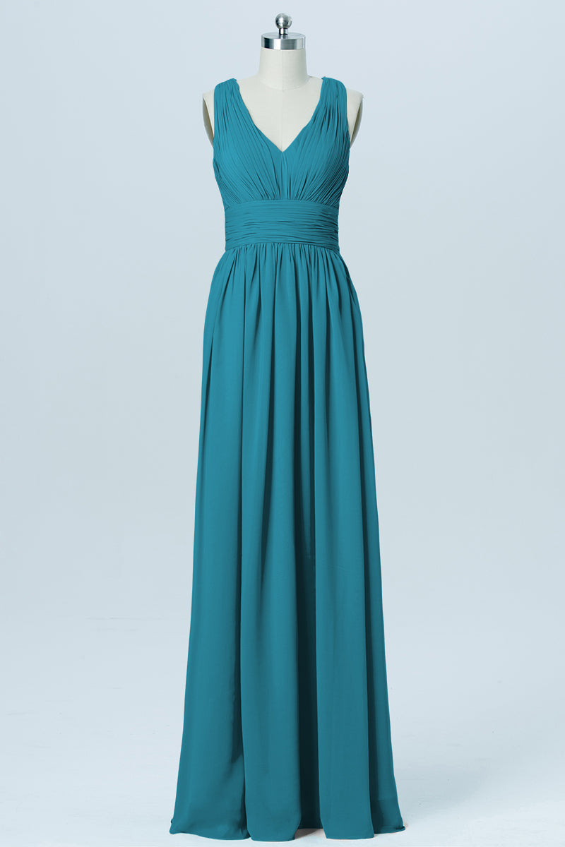 Chiffon Column V-Neck Sleeveless Bridesmaid Dress-B03022