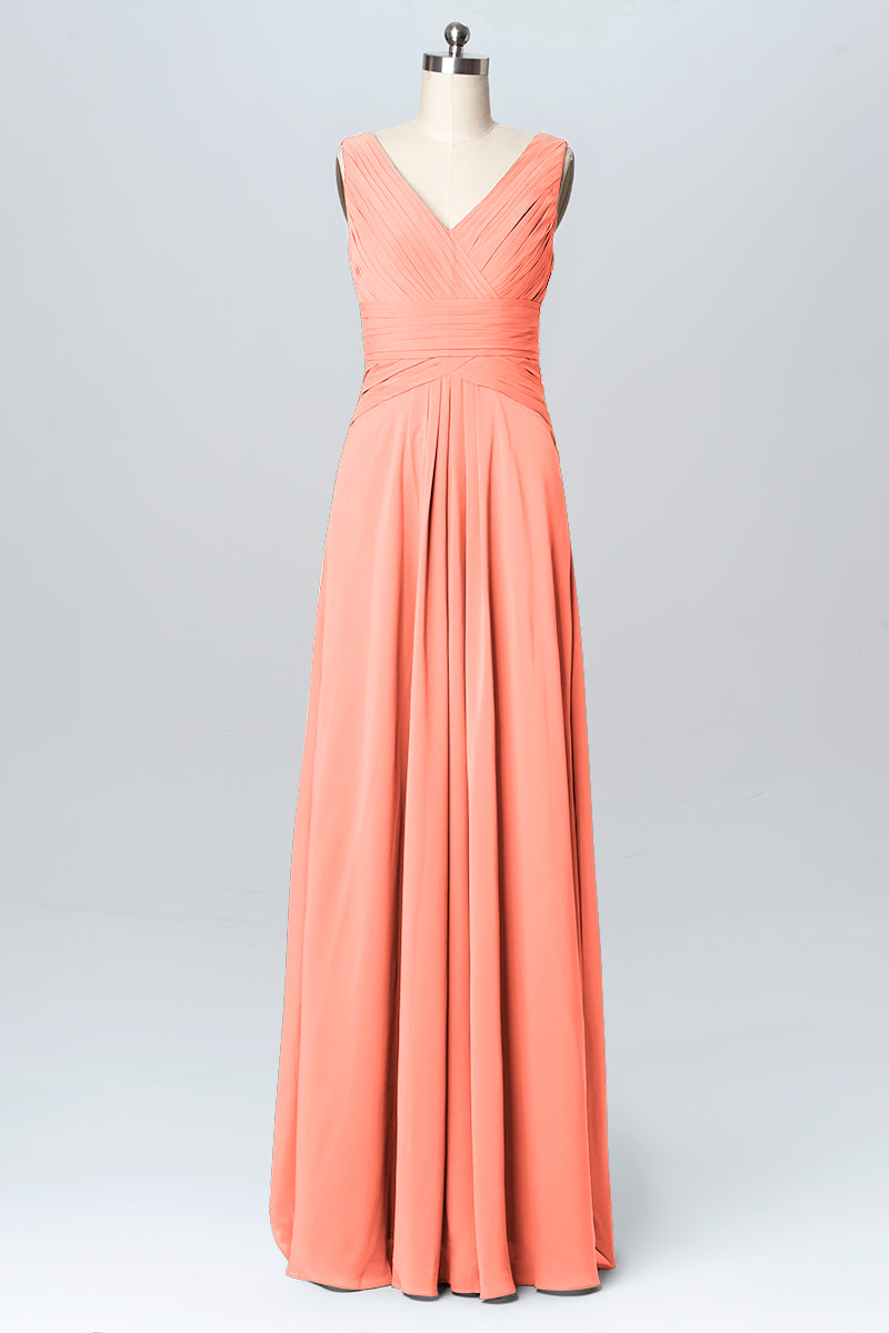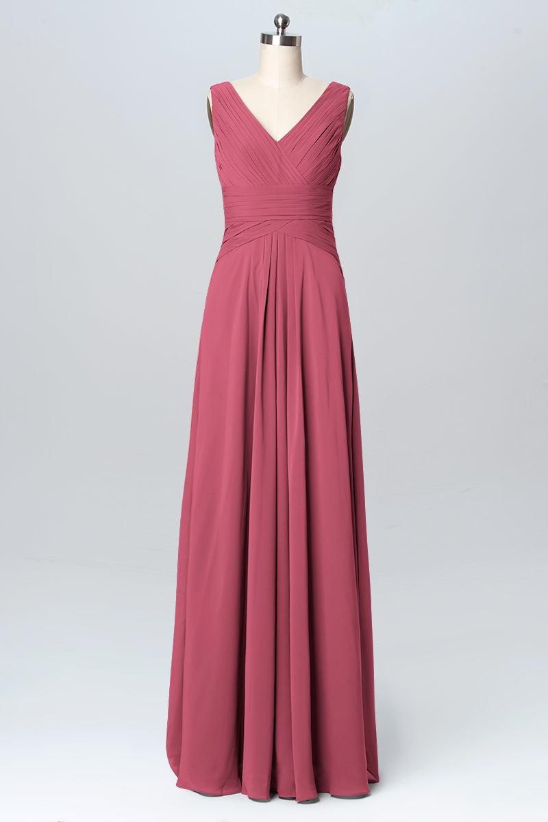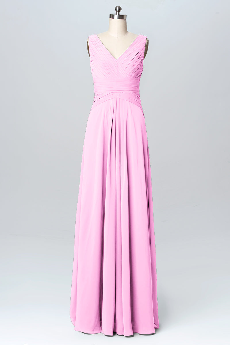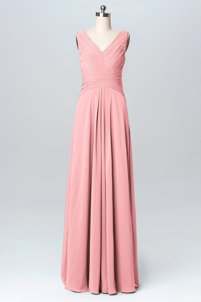 Chiffon Column V-Neck Sleeveless Bridesmaid Dress-B03097