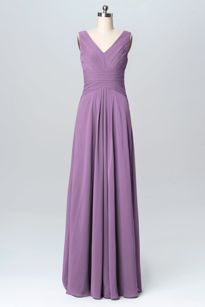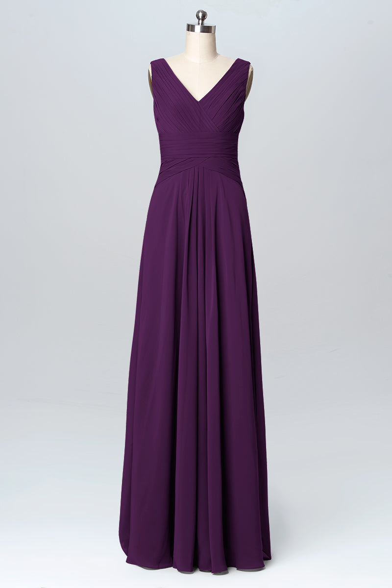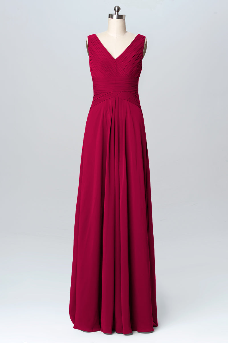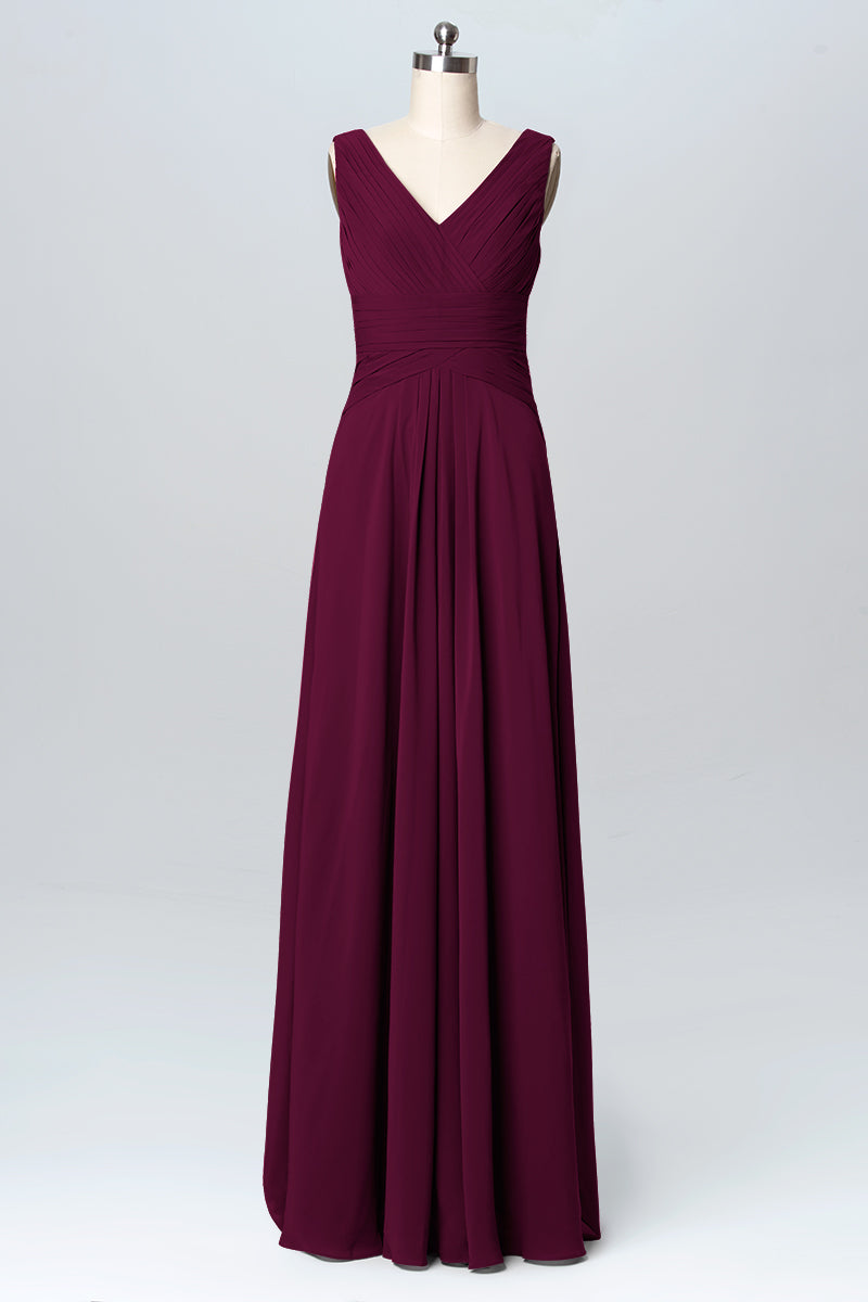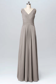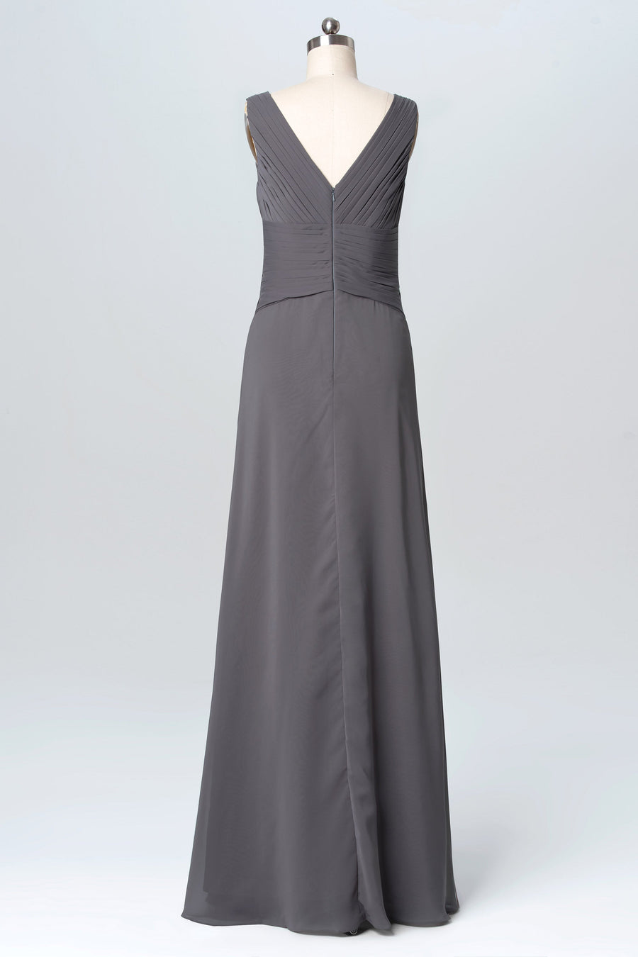 Chiffon Column V-Neck Sleeveless Bridesmaid Dress-B03097