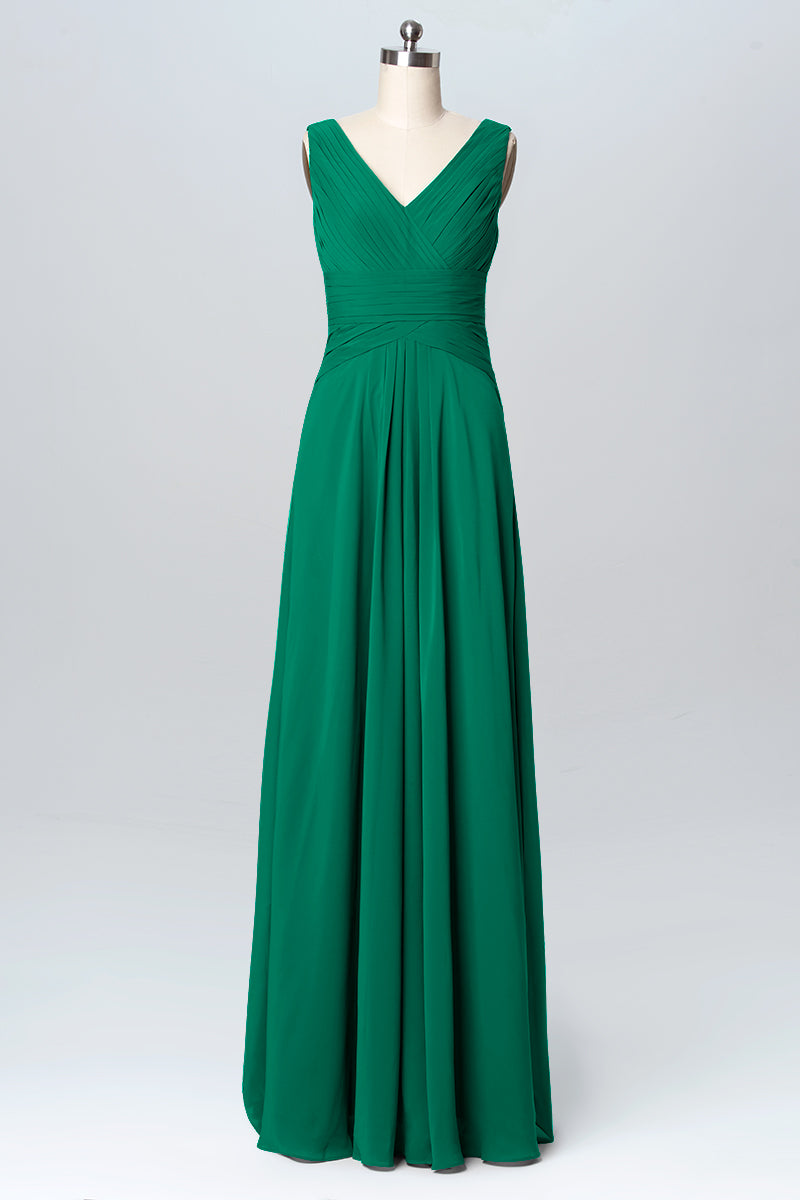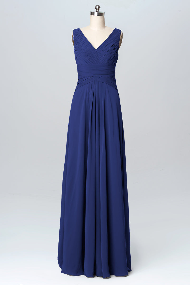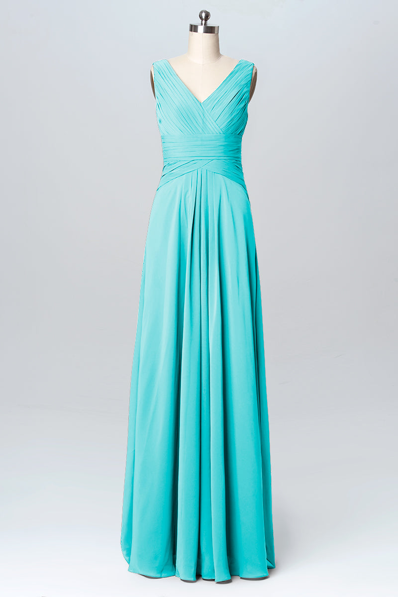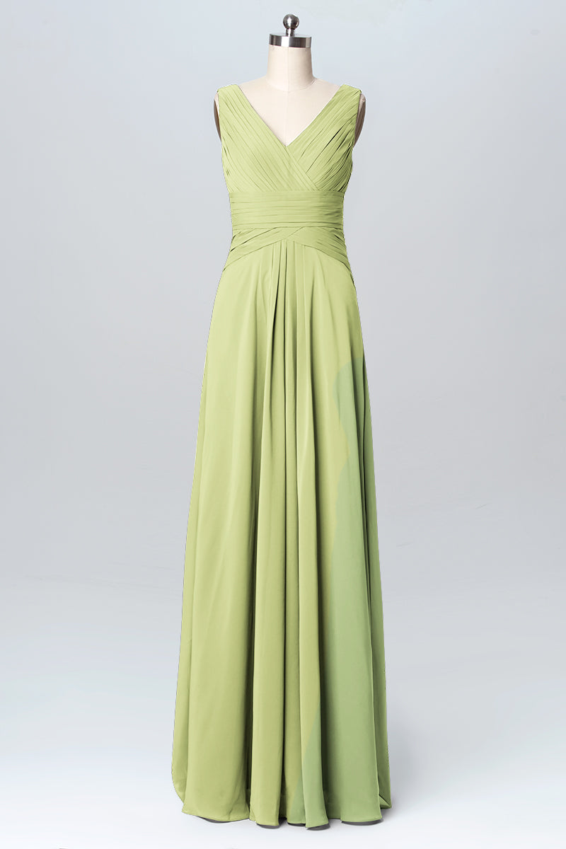 Chiffon Column V-Neck Sleeveless Bridesmaid Dress-B03097