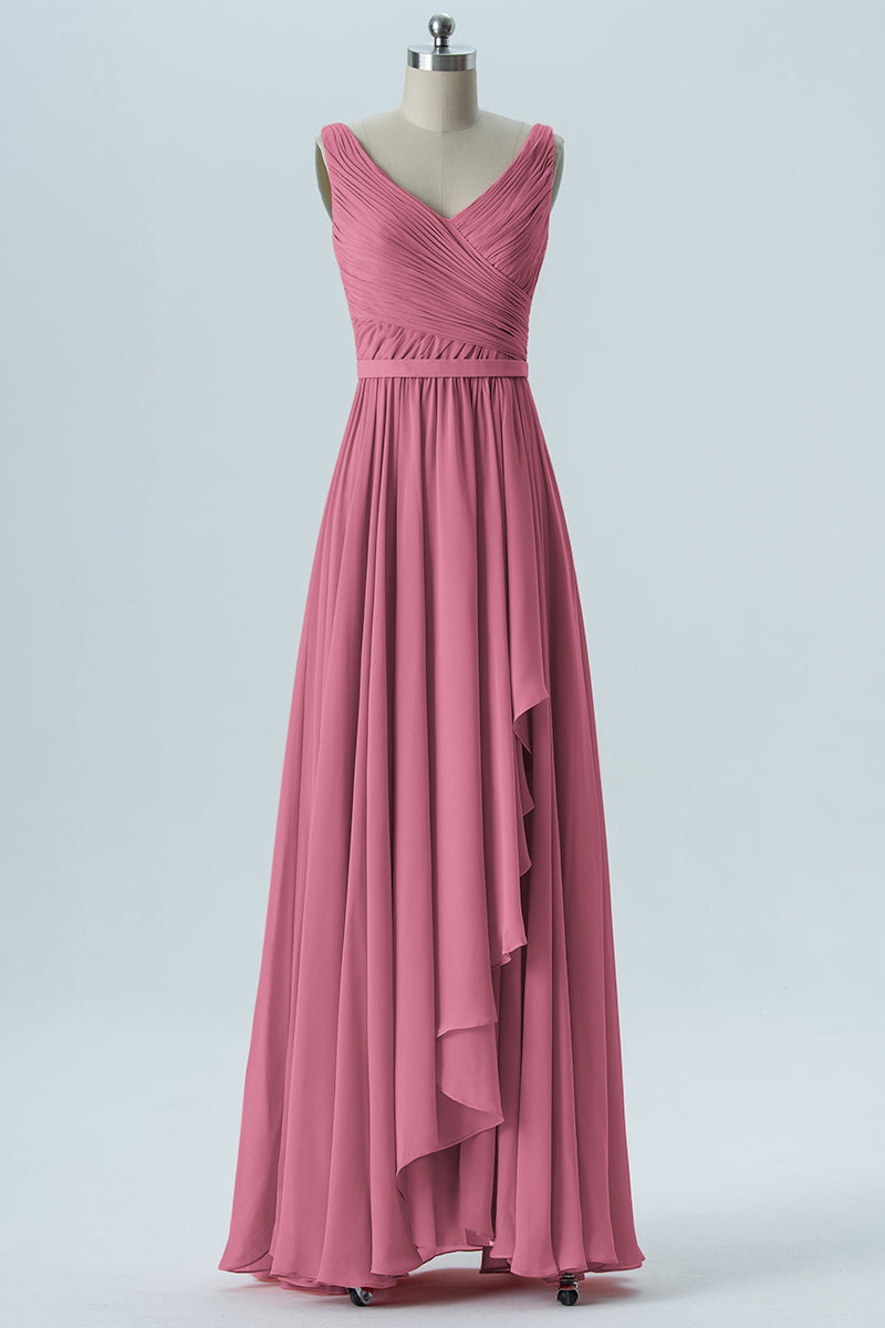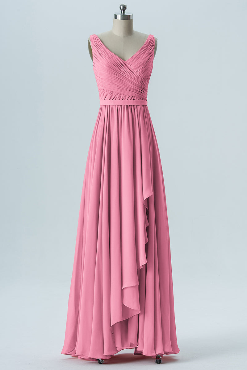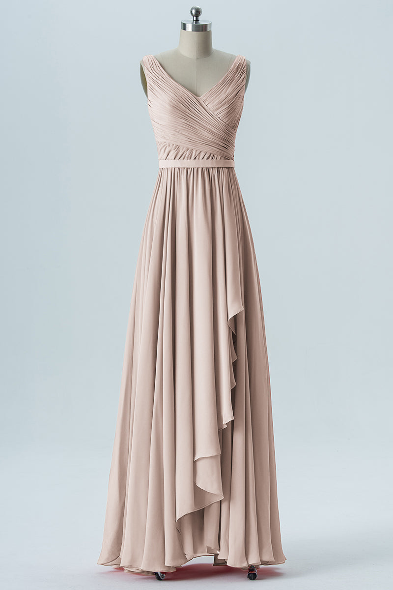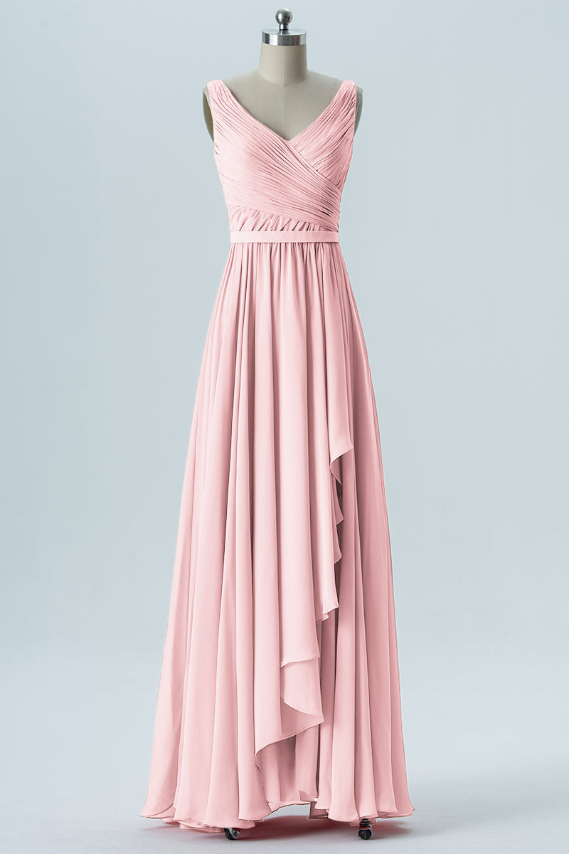 Chiffon Column V-Neck Sleeveless Bridesmaid Dress-B08368
