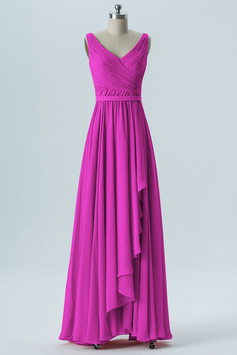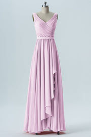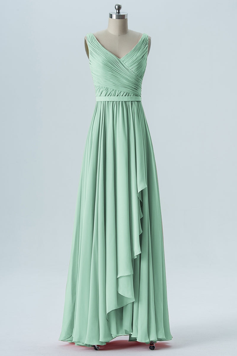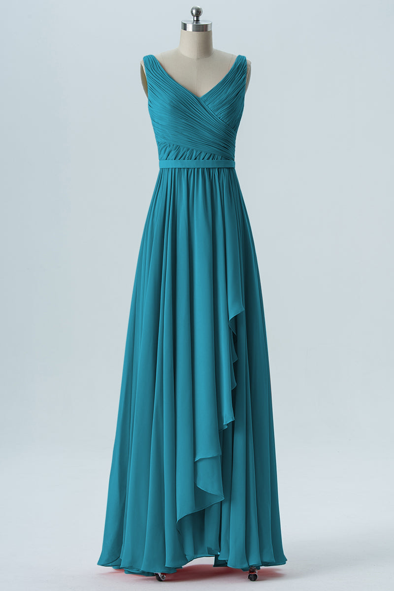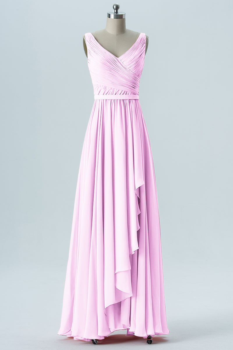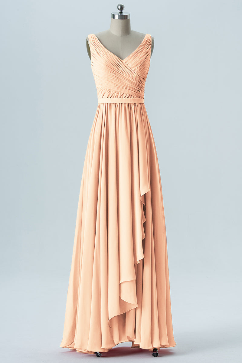 Chiffon Column V-Neck Sleeveless Bridesmaid Dress-B08368