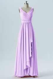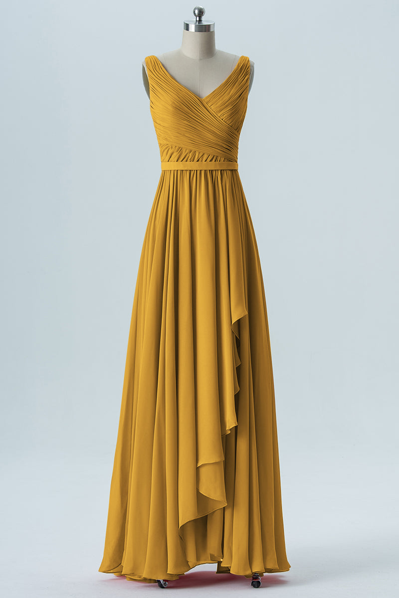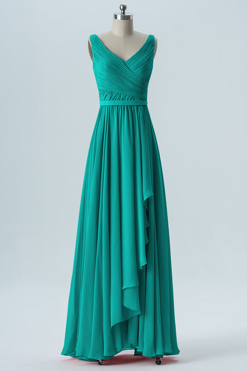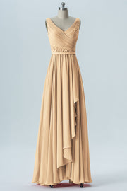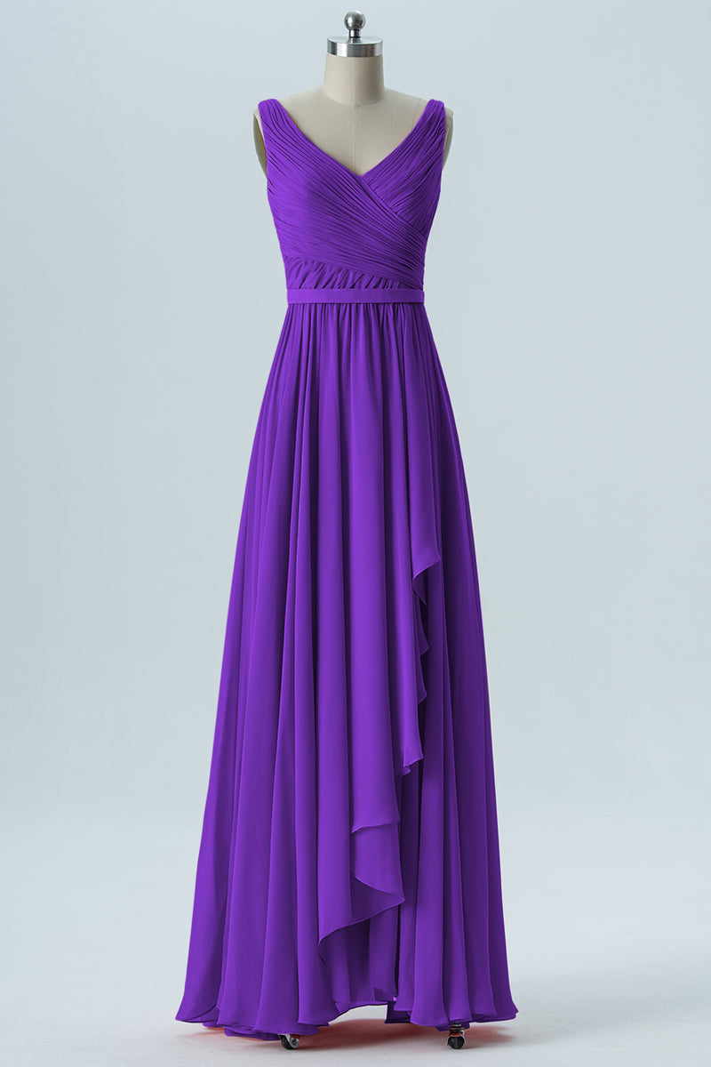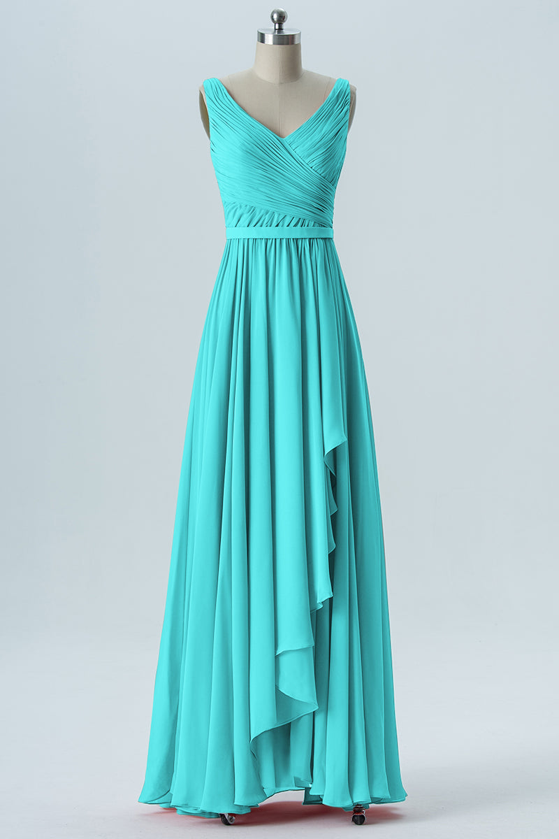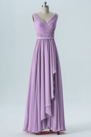 Chiffon Column V-Neck Sleeveless Bridesmaid Dress-B08368