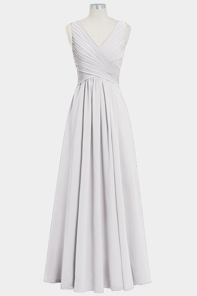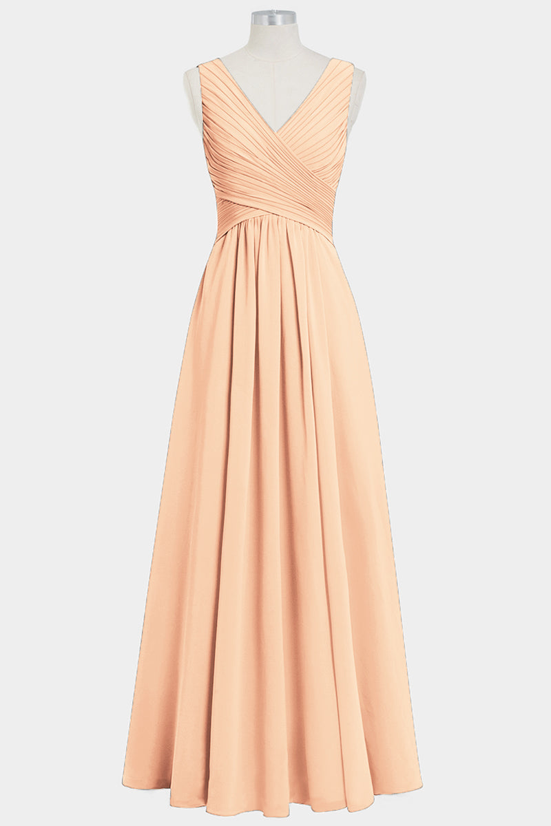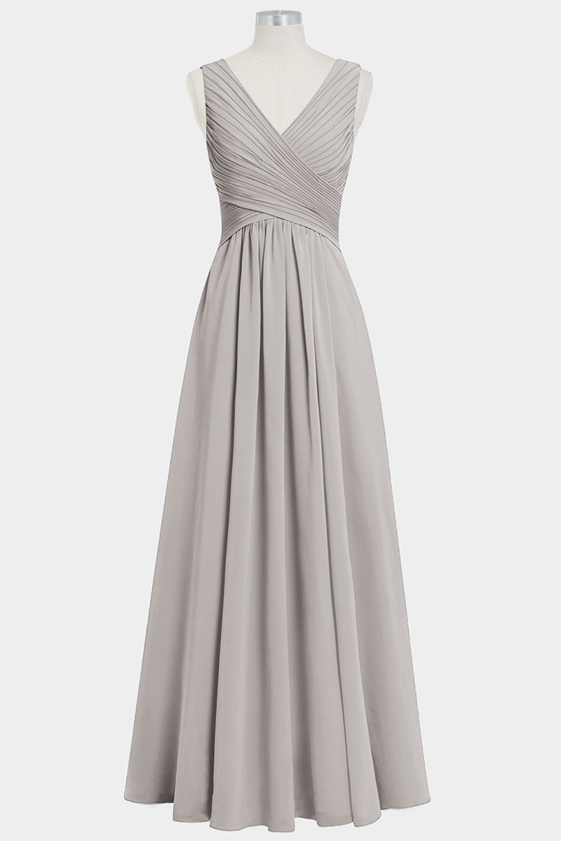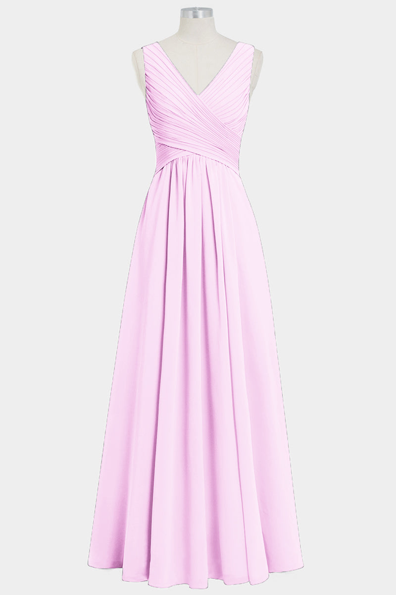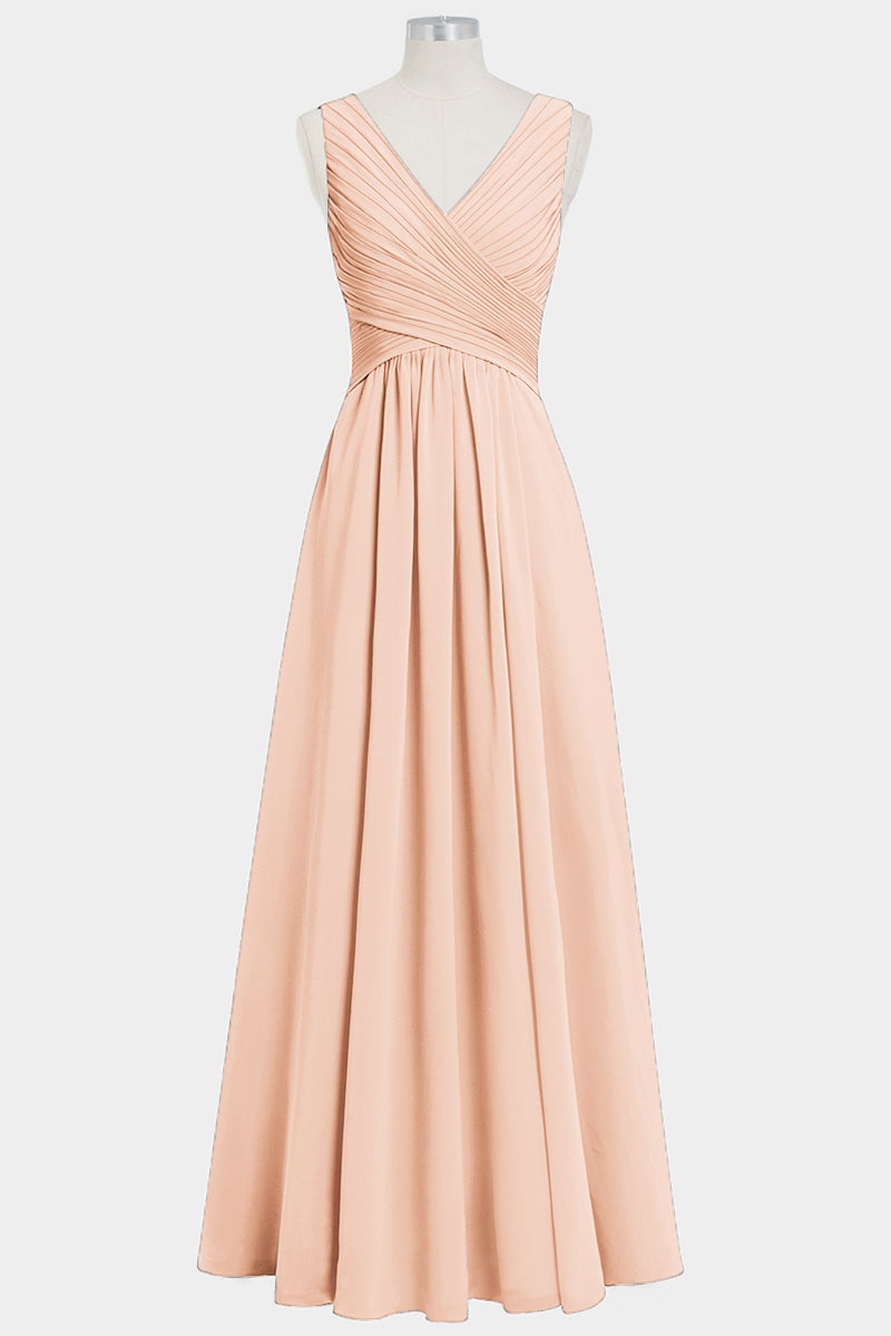 Chiffon Column V-Neck Sleeveless Bridesmaid Dress-B14021