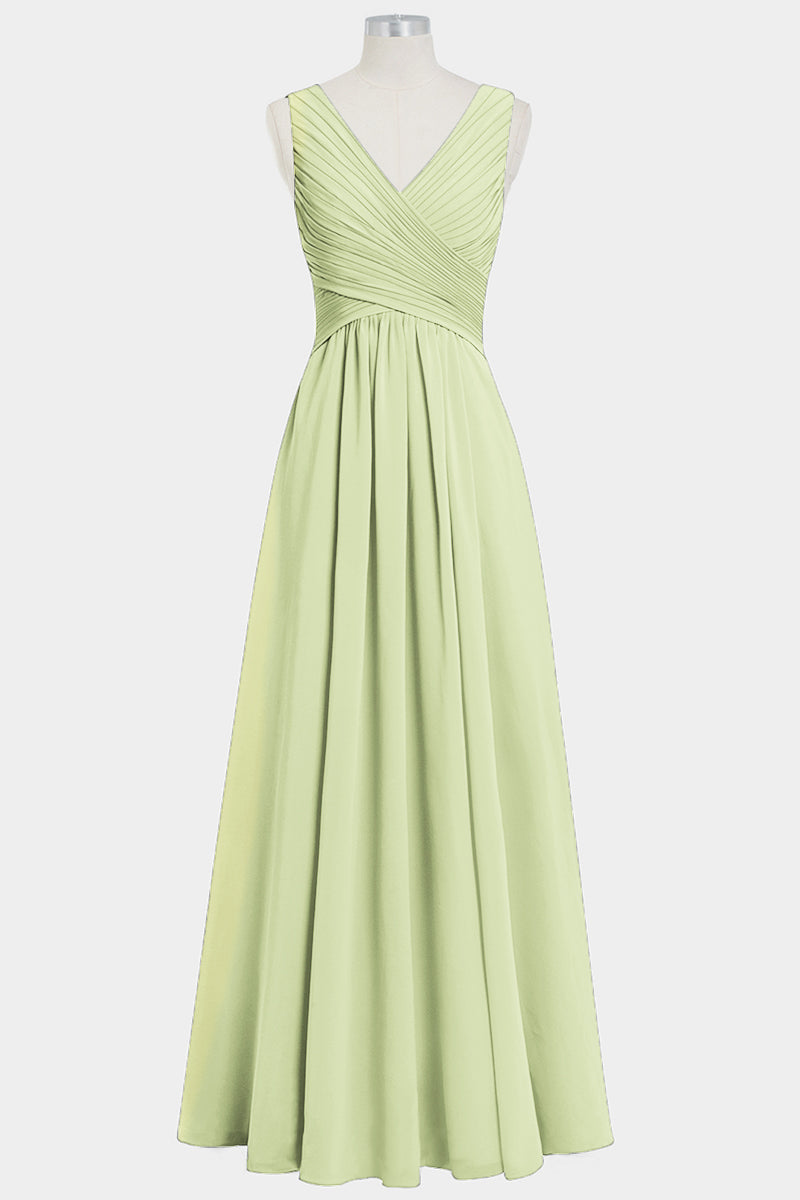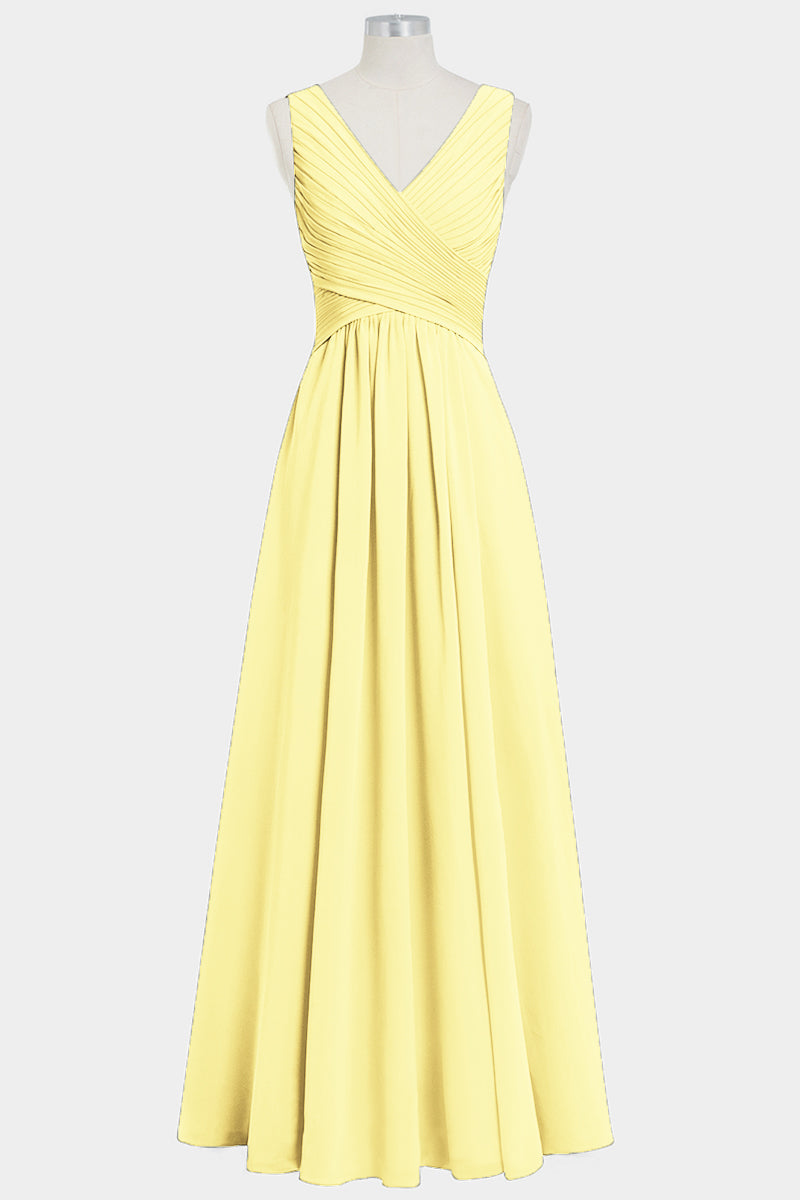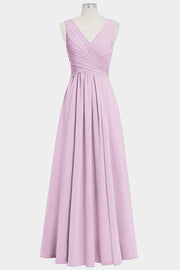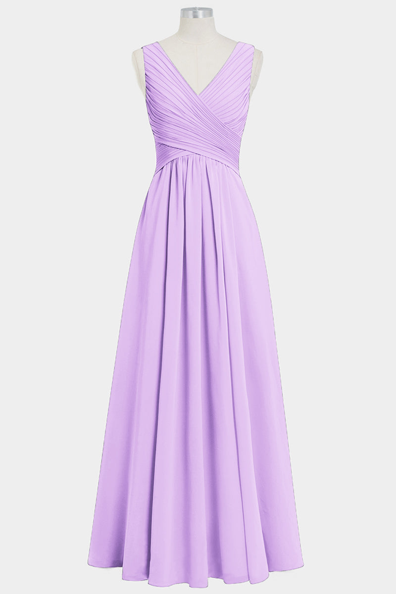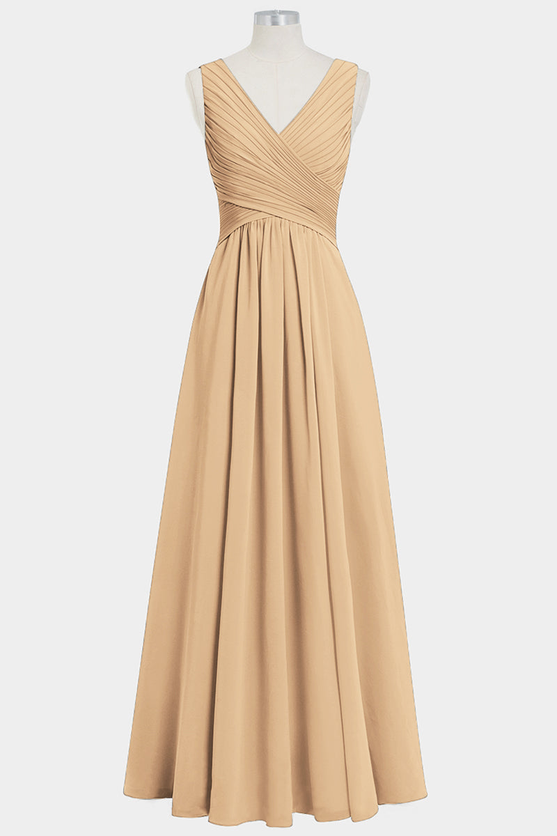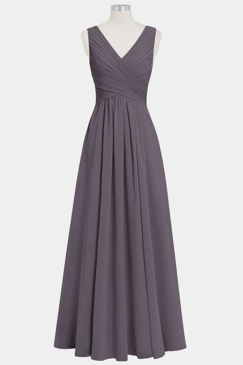 Chiffon Column V-Neck Sleeveless Bridesmaid Dress-B14021