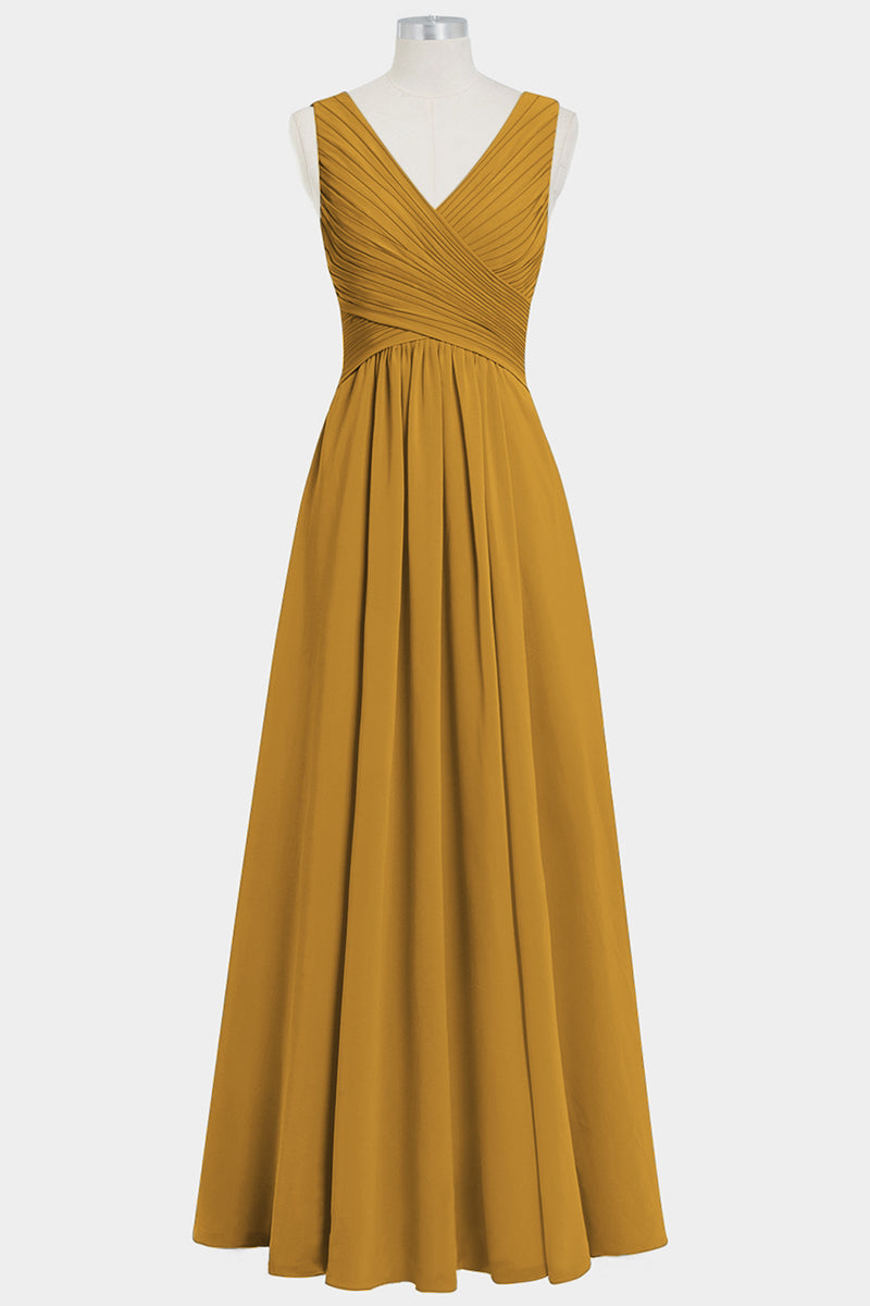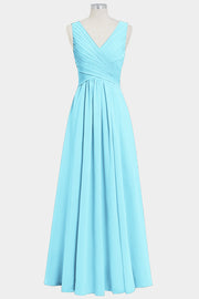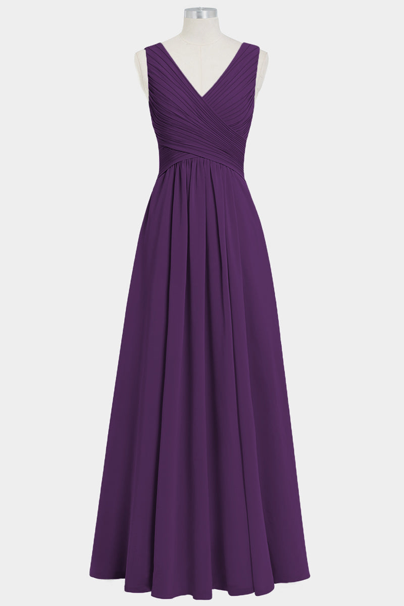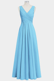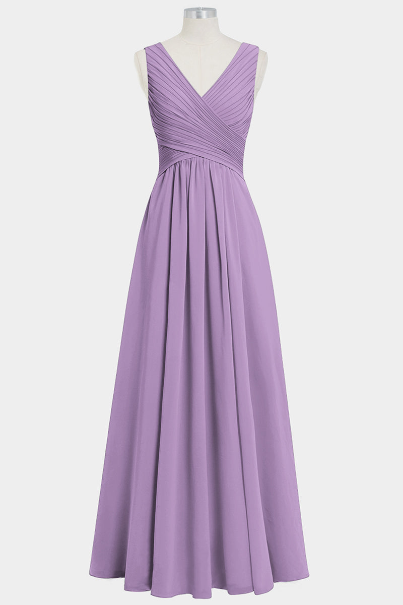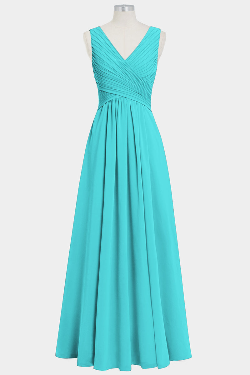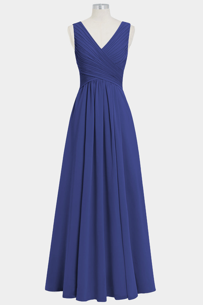 Chiffon Column V-Neck Sleeveless Bridesmaid Dress-B14021