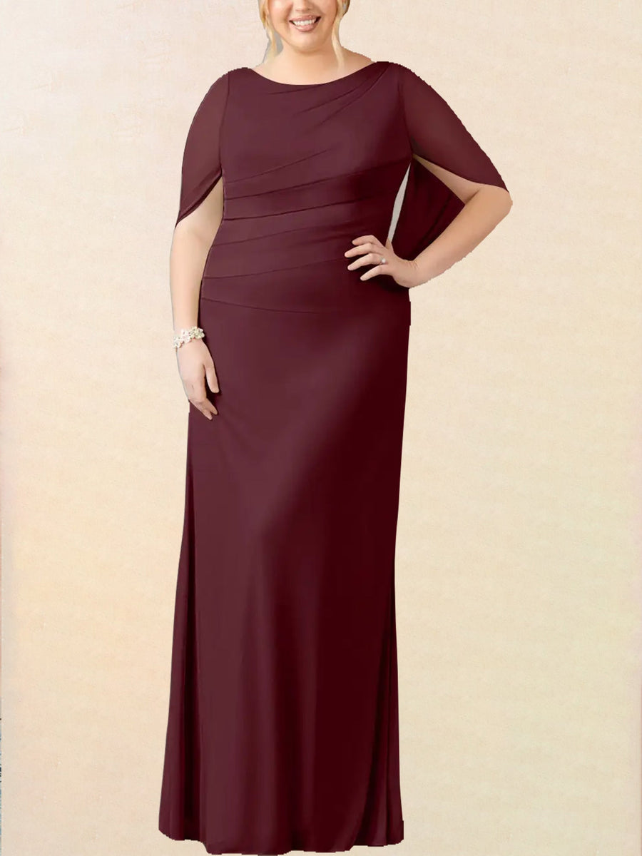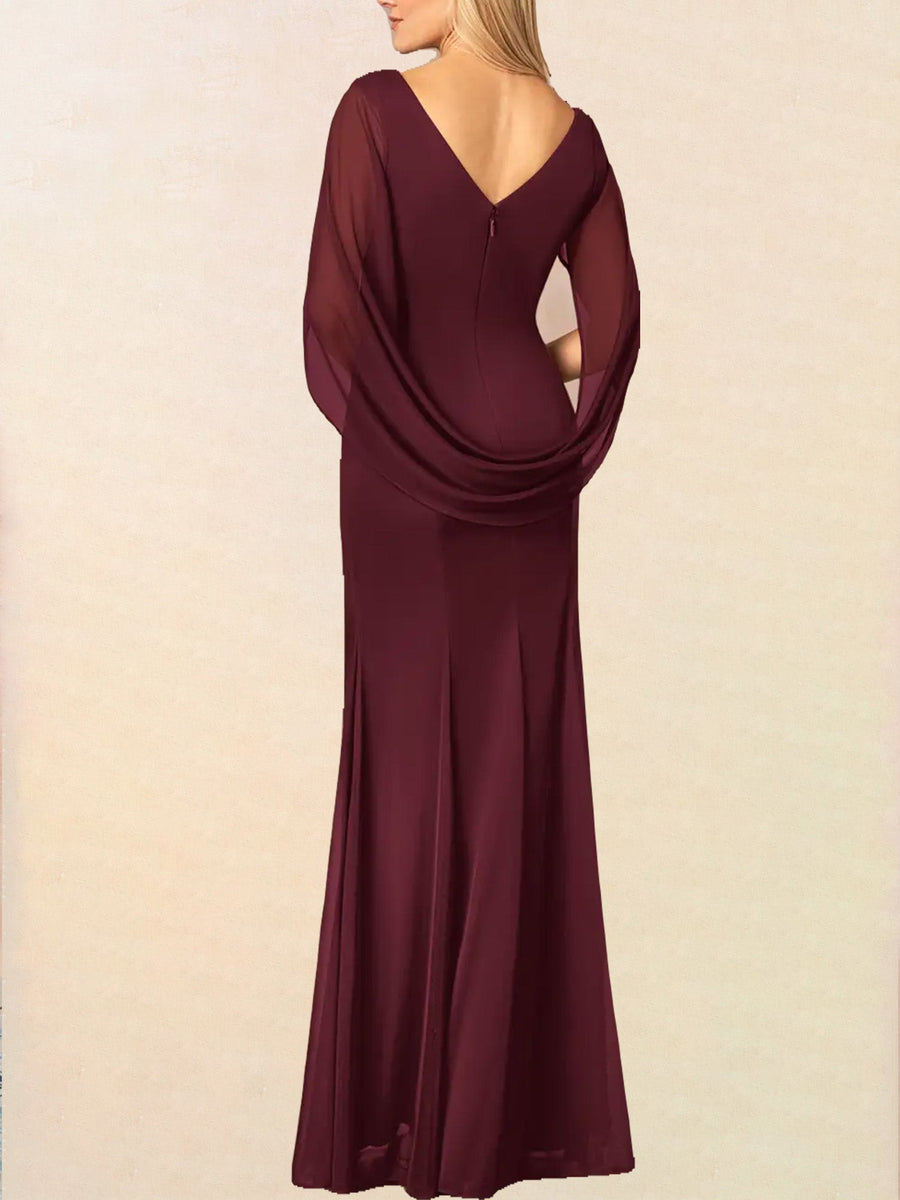 Chiffon Mermaid Scoop Neck 3/4 Sleeves Dress-BM00017
