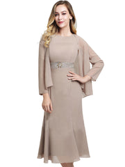 Chiffon Mermaid/Trumpet Scoop Neck Long Sleeves Dress-BM00048