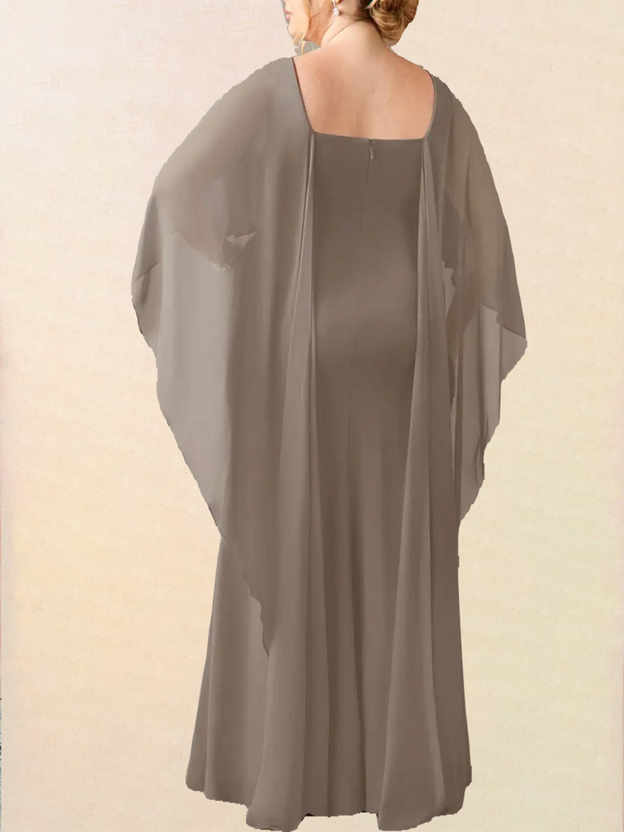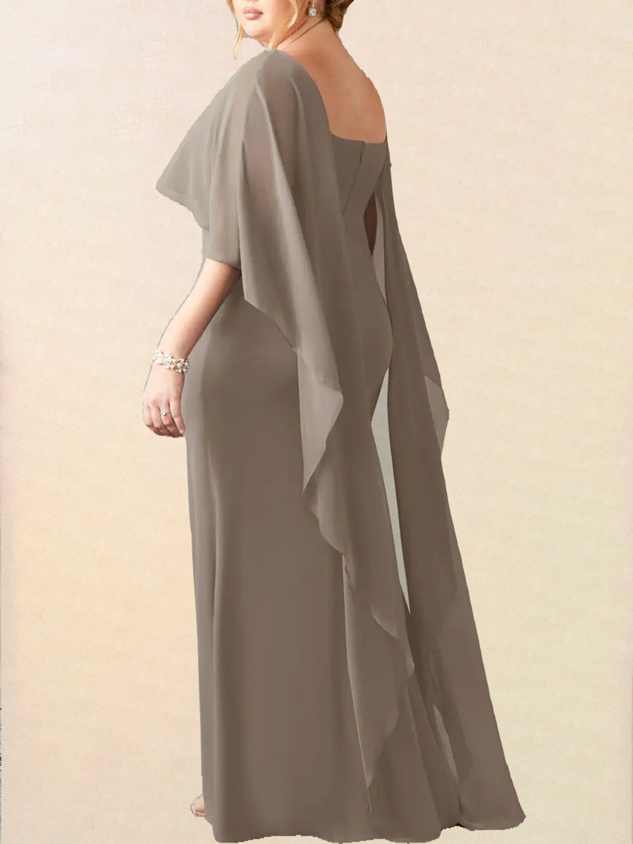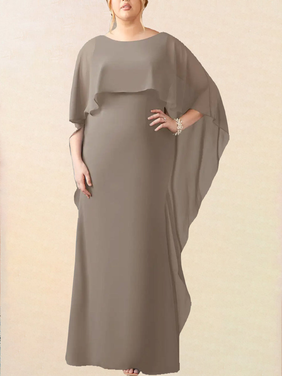 Chiffon Sheath Scoop Neck Half Sleeves Dress-BM00009