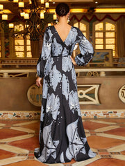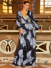 FLORAL A-Line V-Neck Long Sleeves-Dress-BM00034