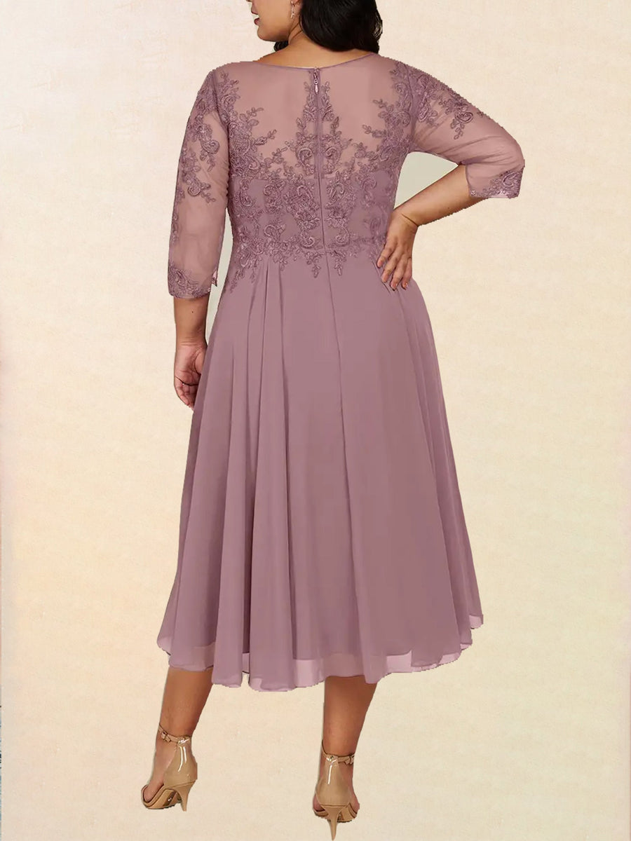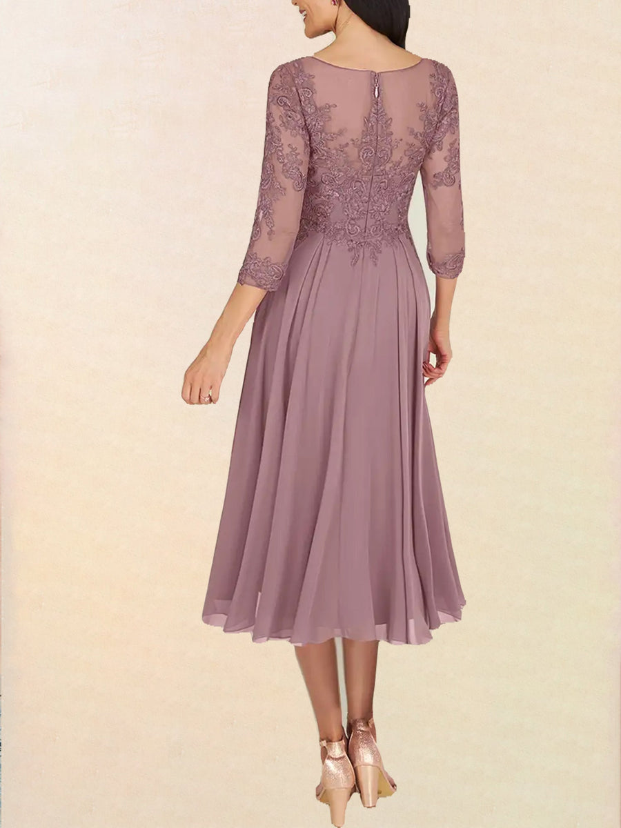 Lace A-Line Scoop Neck Long Sleeves Dress-BM00013