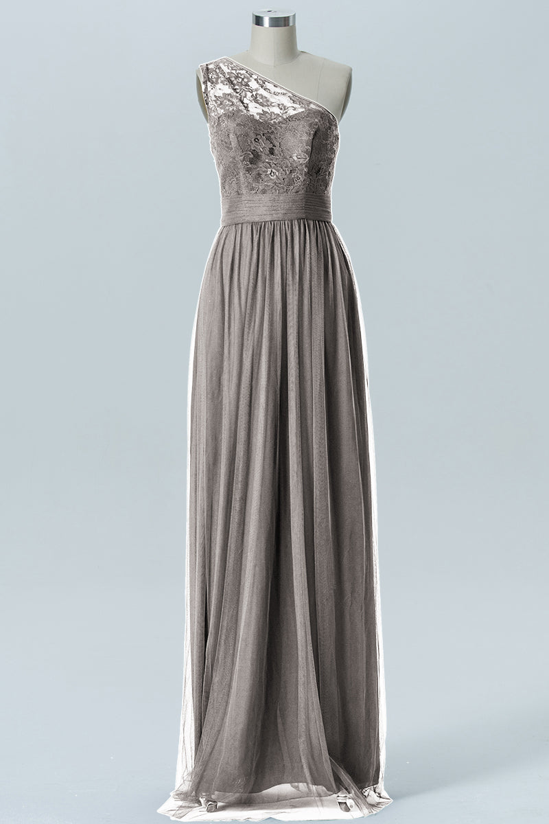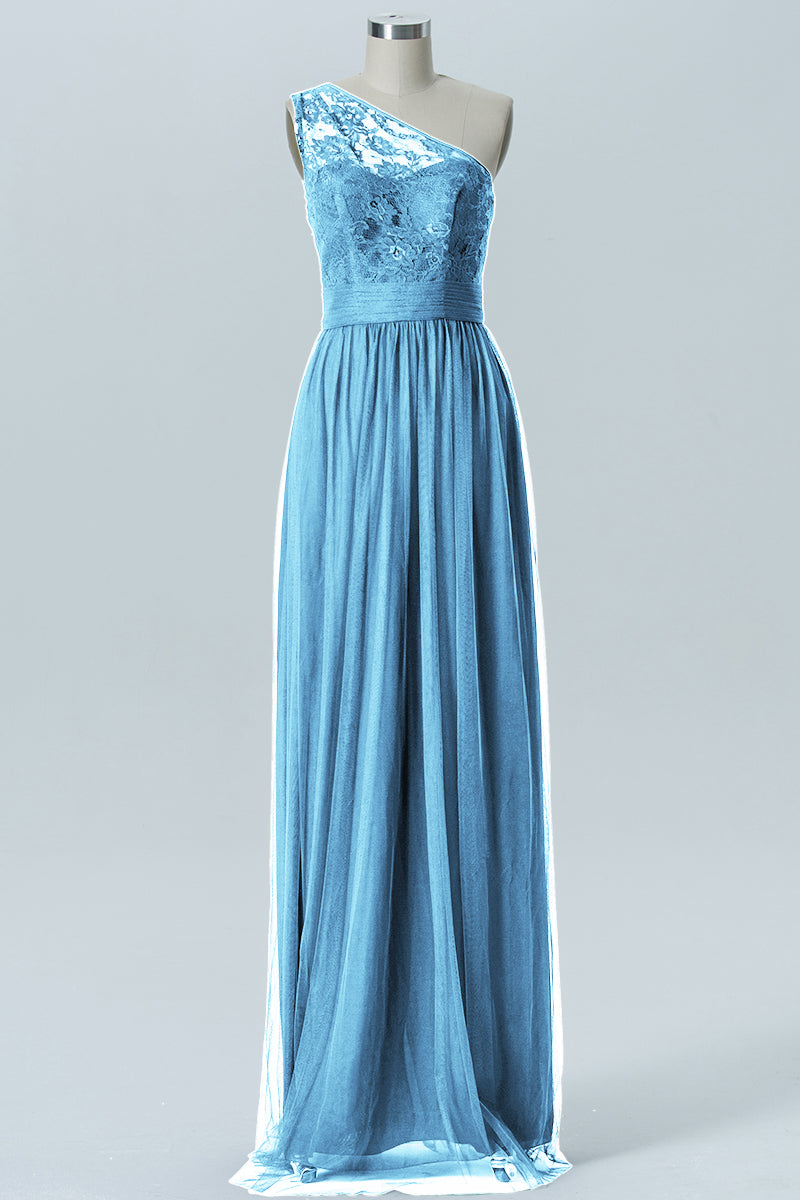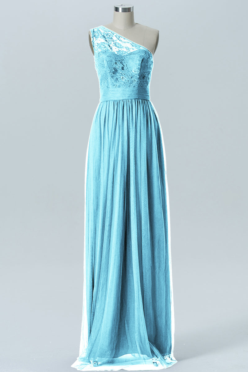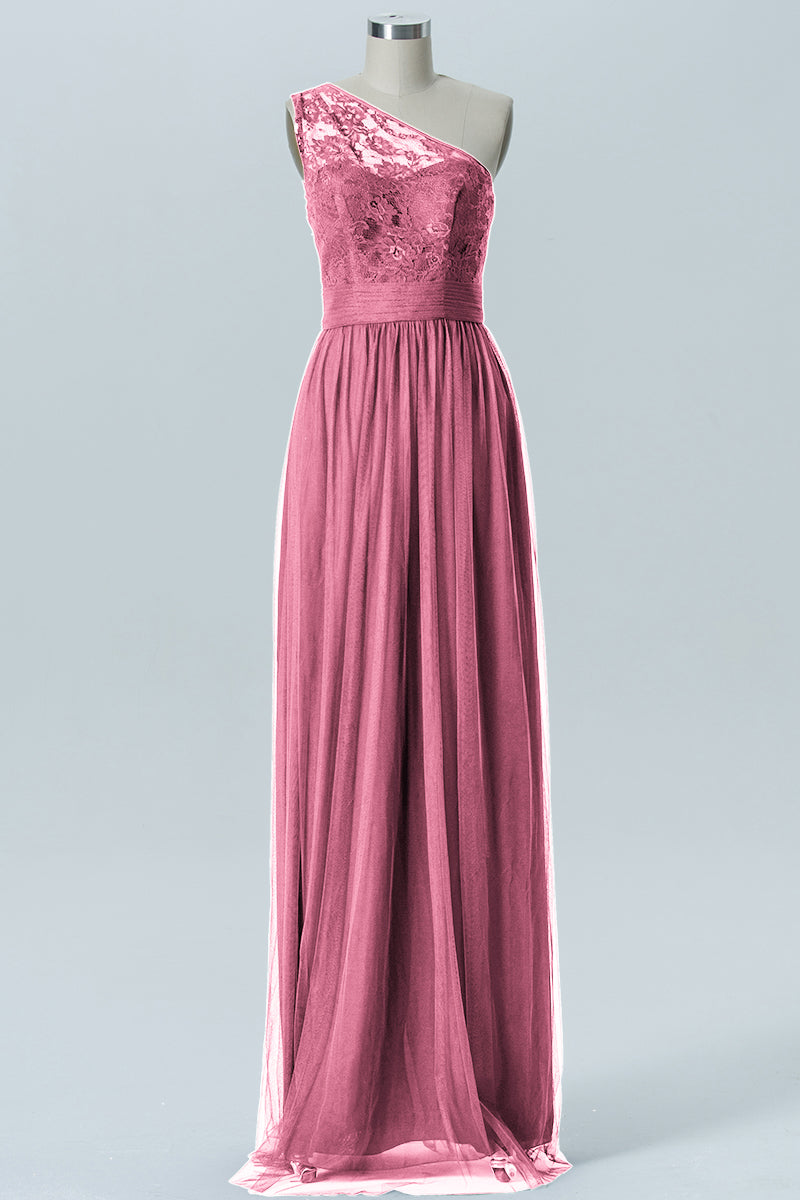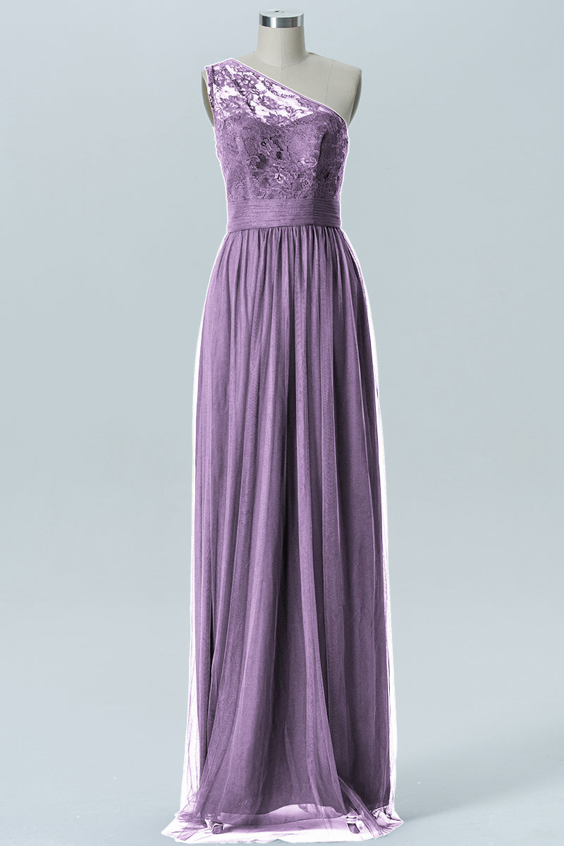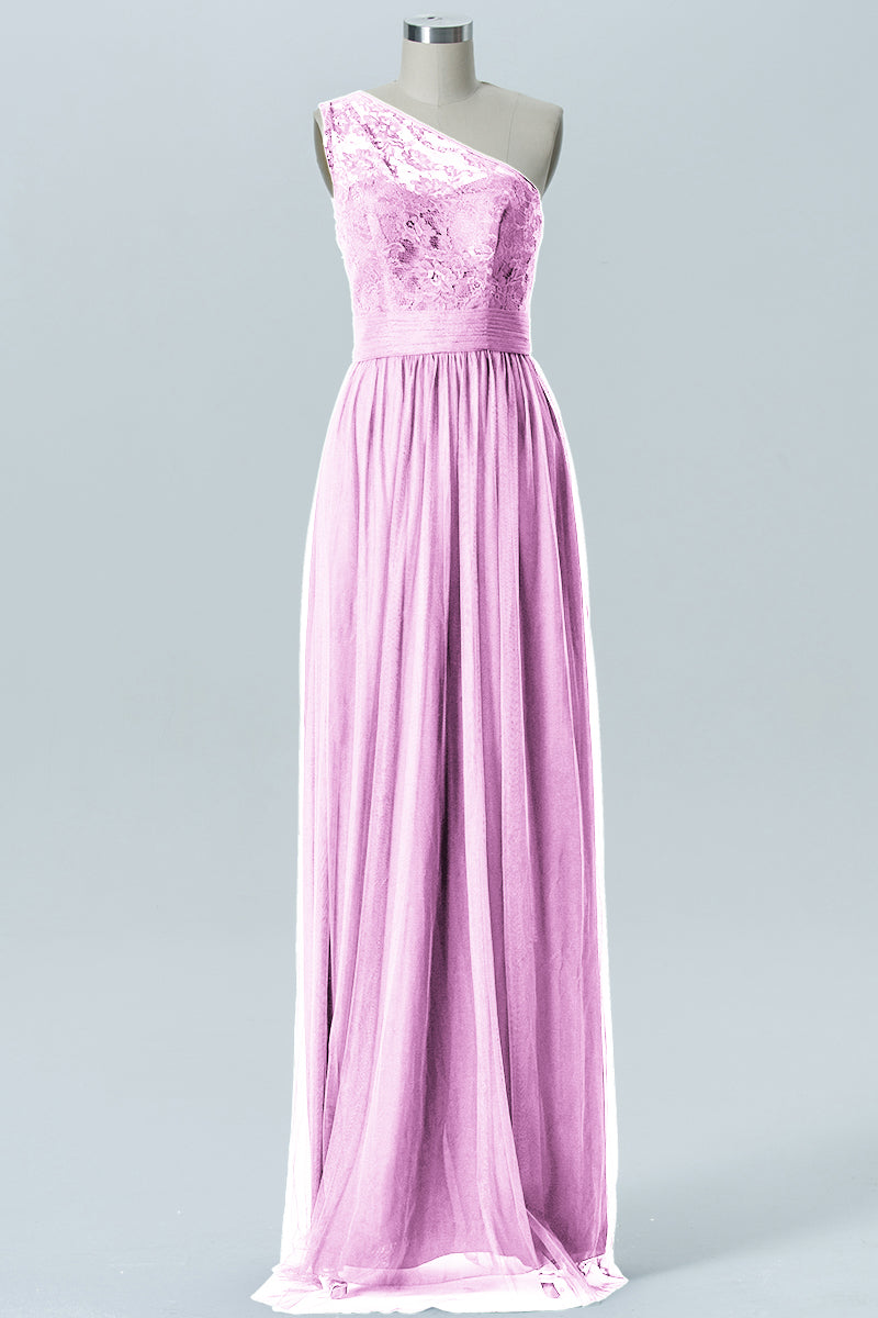 Lace Column One Shoulder Sleeveless Bridesmaid Dress-B08209