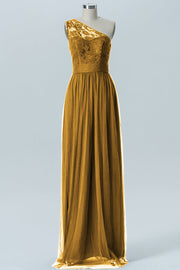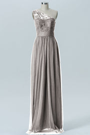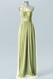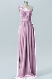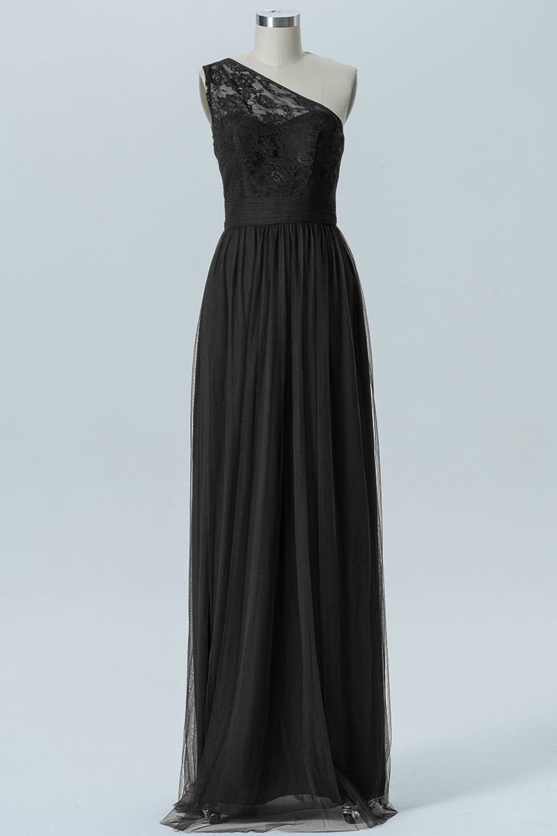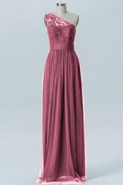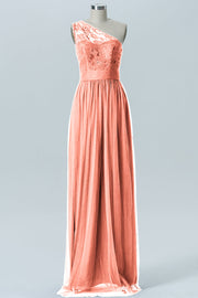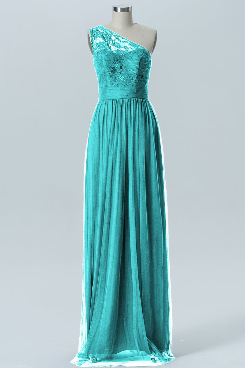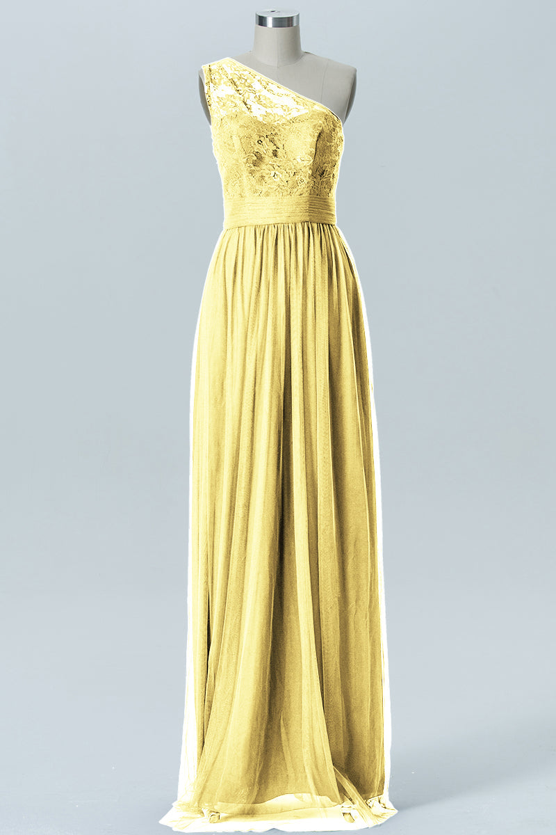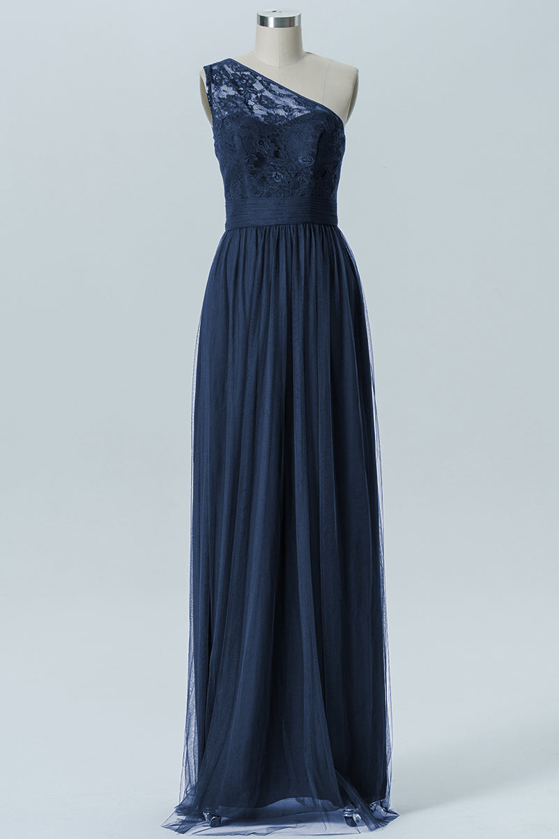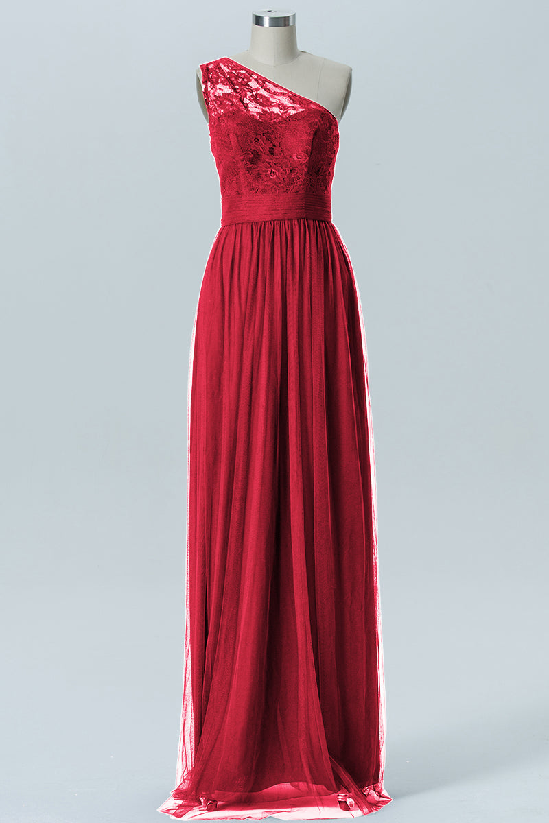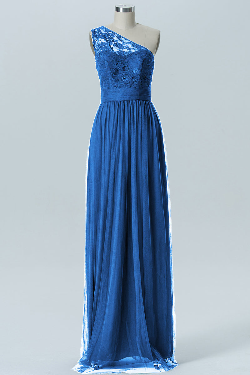 Lace Column One Shoulder Sleeveless Bridesmaid Dress-B08209