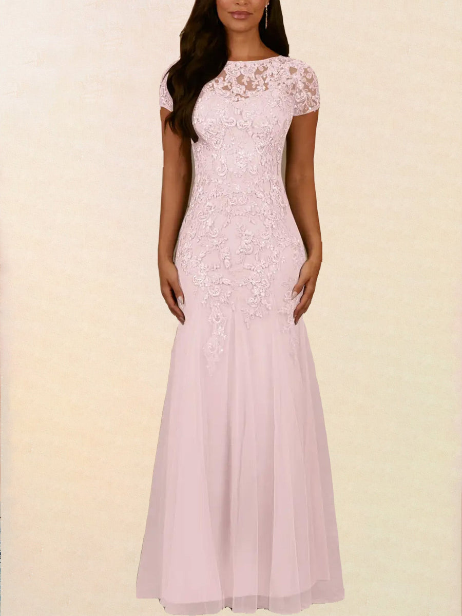 Lace Mermaid Scoop Neck Half Sleeves Dress-BM00012