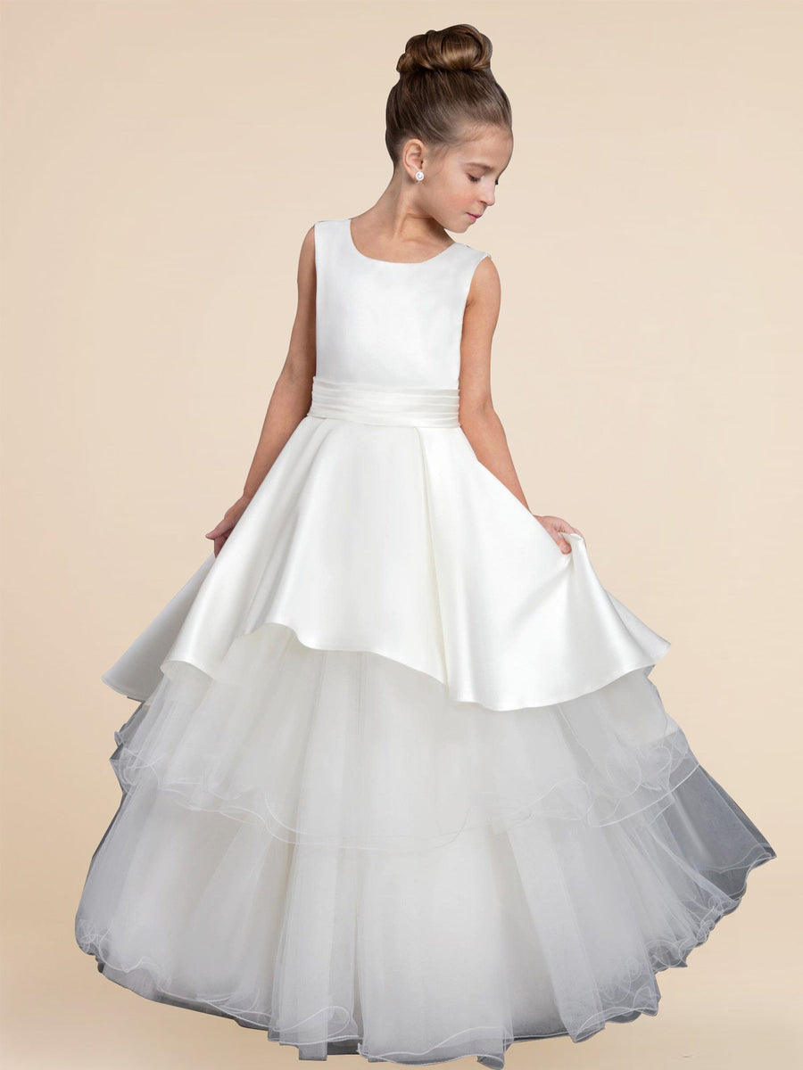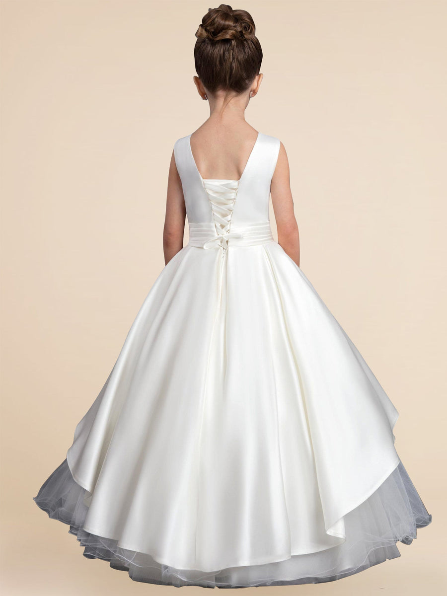 Satin A-Line Scoop Neck Sleeveless Flower Girl Dress-B500034