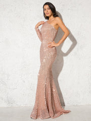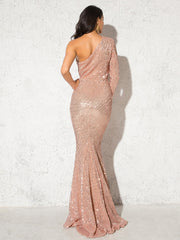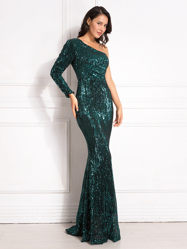 Sequin Mermaid One Shoulder Long Sleeves Dress-BM00036